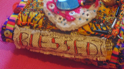 | Fabric Journal, an assortment of materials decorate the front |