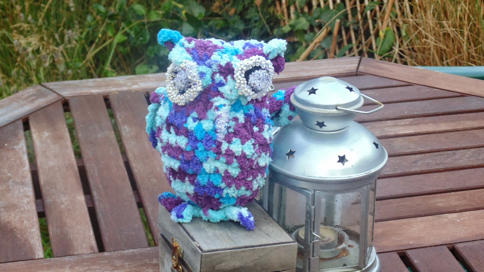 I was quite interested in the amigurami patterns that I have been seeing and decided to try my hand at it using a thicker wool to get a quicker result, and Ollie was born... the glitzy owl. My owl is made from two toned chunky wool and I decided to