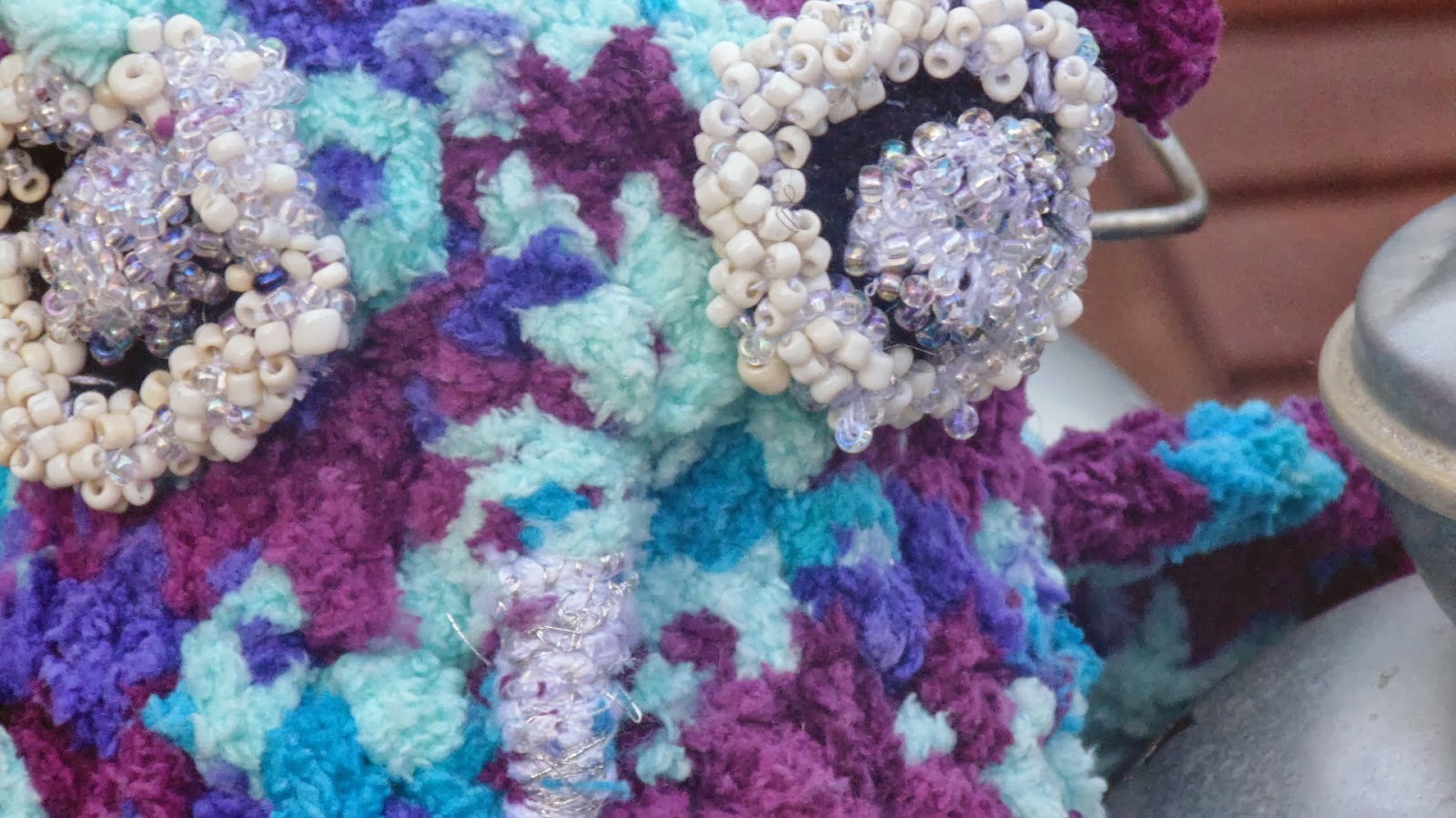 The bead give his beak and his eyes a bit more sparkle. This is such an easy pattern that you can finish in a couple of hours, the thing that took the time was adding the beads. I am looking forward to improving on Ollie when I make the rest of his family!
