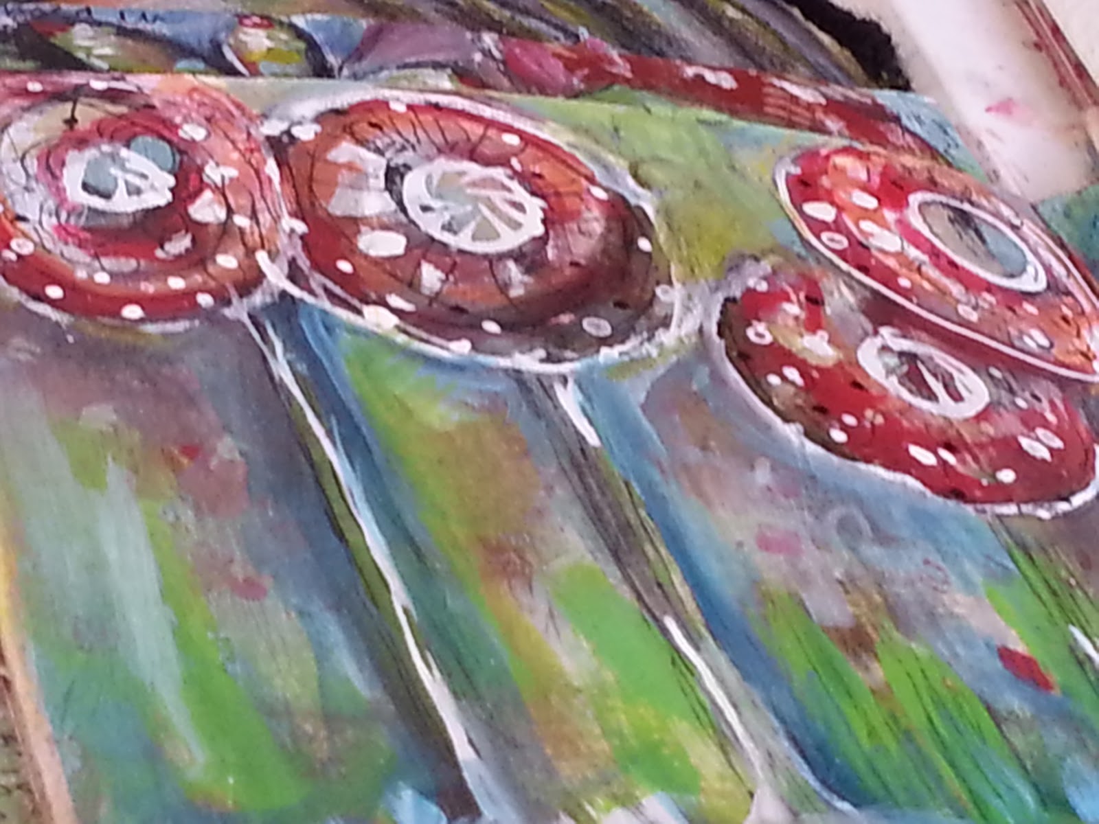 Nothing was accessible, but I worked round things and stayed up late when everyone had gone to bed and was able to spread my supplies out a bit more.  I realized that it wasn't about how much space you had but how you used it.  I have seen other artists work in much smaller spaces and when I thought about it I had the space that I needed to create.